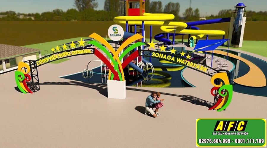 Cổng chào Công viên nước SONAGA là minh chứng rõ ràng cho năng lực thiết kế sáng tạo và thi công chuyên nghiệp của Quảng Cáo AFC.