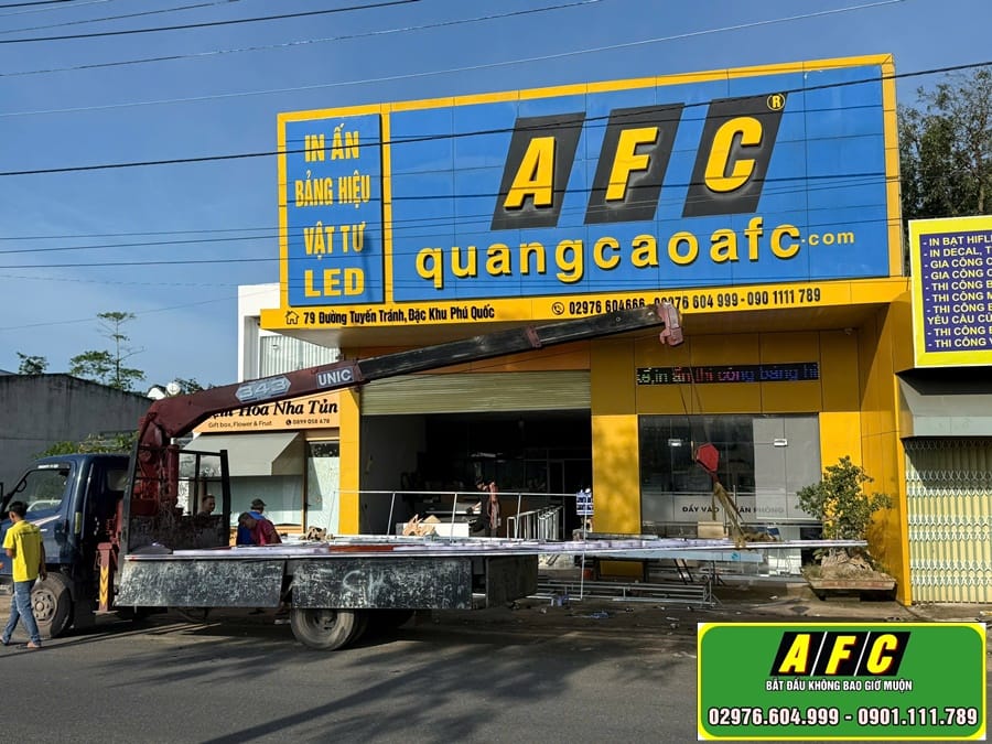 Thi công bảng hiệu Thành Hiếu tại Phú Quốc – Chuyên nghiệp, bền đẹp, chuẩn nhận diện thương hiệu Trong ngành xây dựng – thương mại, một bảng hiệu đẹp không chỉ giúp khách hàng dễ nhận biết. Nó còn khẳng định uy tín và đẳng cấp của doanh nghiệp. Mới đây, Quảng Cáo AFC…