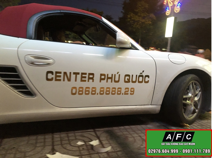 Quảng Cáo AFC nhận in Decal dán xe ô tô giá rẻ, chất lượng tại Phú Quốc. Công ty chúng tôi chuyên nhận in phun in PP, in Backlit Film, in bat Hiflex, In Decal trong bằng các thiết bị máy móc hiện đại, mang đến cho bạn những tấm hình bắt mắt nhất.