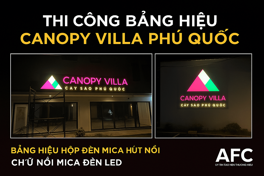 Thi công bảng hiệu chữ nổi đèn LED cho Canopy Villa Cây Sao Phú Quốc. Thiết kế hiện đại, nổi bật ban đêm. Quảng Cáo AFC – đơn vị làm bảng hiệu chuyên nghiệp tại Phú Quốc. Bảng Hiệu Chữ Nổi Đèn LED Sang Trọng Cho Canopy Villa Phú Quốc Quảng Cáo AFC tự hào…