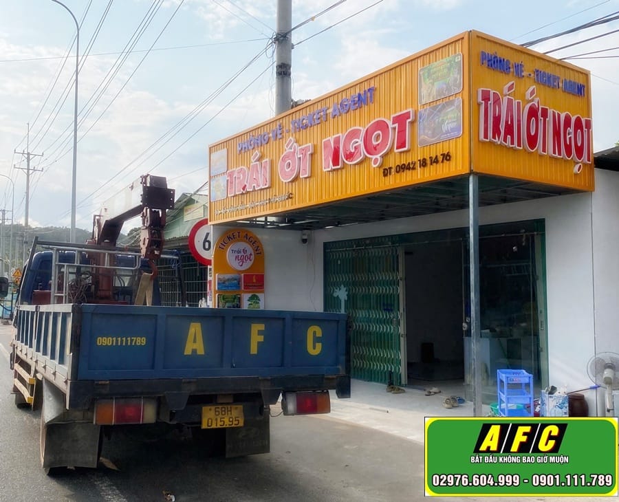 Vừa qua Quảng Cáo AFC Phú Quốc đã hoàn thành công trình bảng hiệu phòng vé. Công trình được thực hiện cho thương hiệu Trái Ớt Ngọt – Ticket Agent. Bảng hiệu nằm ngay mặt tiền đường lớn.